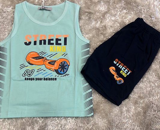 completino bimbo in cotone spalla larga e pantaloncino fantasia street king